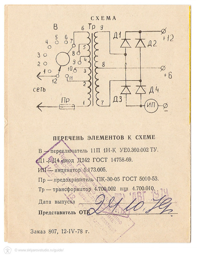 И интересно то, что в ВУ-71М переключатель обеспечивает следующие напряжения: