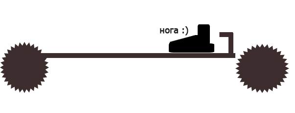 Ну как-то так. Когда самокат опять станет на грунт, нога уйдет вниз - просто сдвигаешь вперед  и все.