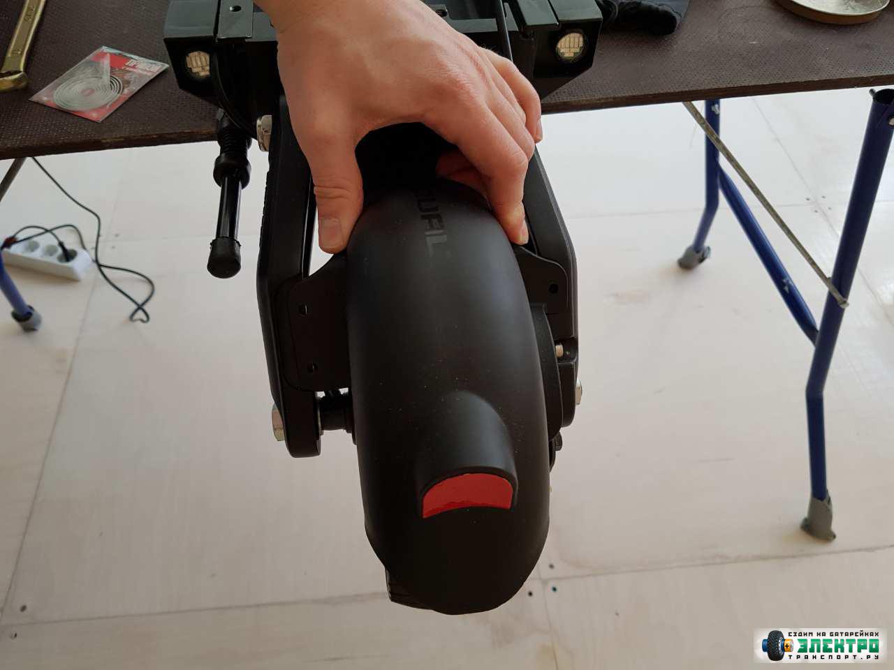 Полетал все выходные и некоторые будни на нем. Общий пробег сейчас 154 км. скорость по спидометру 57 по gps меньше. Думаю 50 будет идти. Словил первый глук. Перенднее колесо вдруг перестало работать, даже давало усилие на прокрутку. (решилось с кнопки подключения доп батки выкл и вкл) потом все стало в порядке. По скорости на максималки самокат иногда начинает рыскать и приходится сбрасывать скорость. По батарейки на работу езжу 12 км - расход составил от 22% до 30%- на полном приводе и постоянном до макс разгоном. Из доработок сделал бызговики из резины на зедний крыло и поставил на перед от миника крыло ( избавился так от брызг на спину и зад) и поставил складной руль.