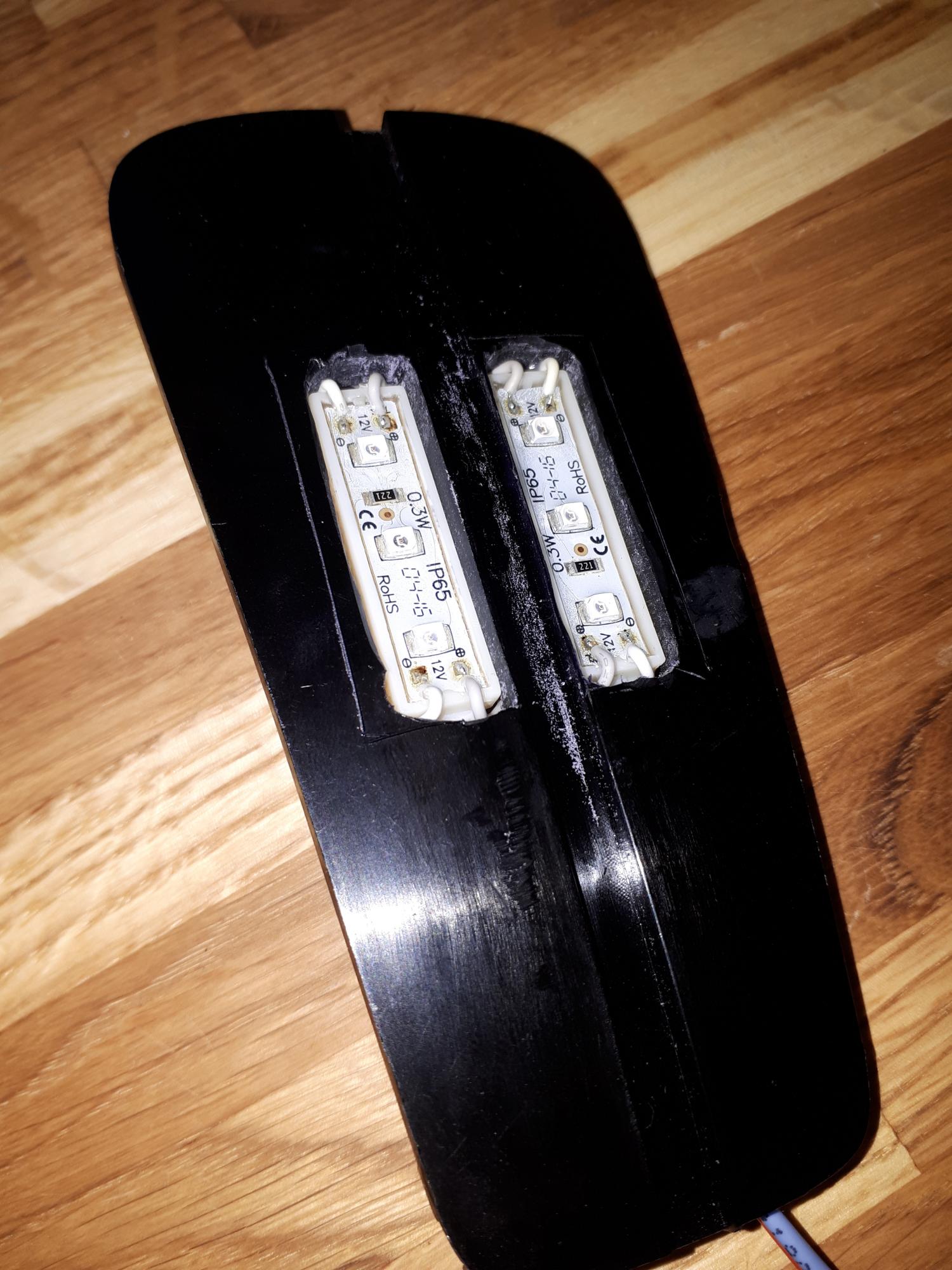 в технологическую пластину итегрировал пару светодиодных модулей.