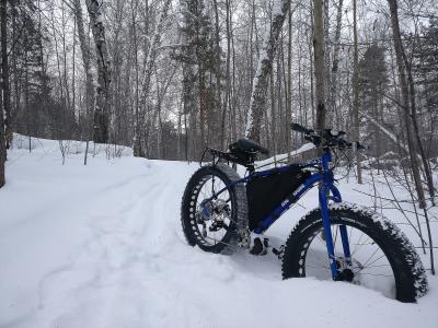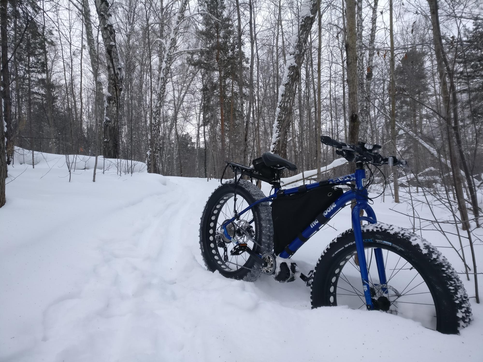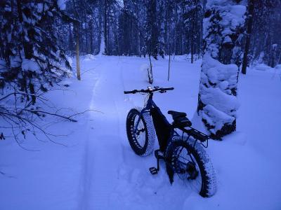 катнул морозным утром, колеса были подспущены, а от мороза совсем обвисли, так наверное ниразу не травил. вобщем в очередной раз: чем давление ниже тем лучше!  по снегоходке свежей (там вообще один прошол, но тяжолый - правильный), лыжне на ура прет. снегоходка вообще тема, широкая, прешь как по дороге :)  за это приходится платить, по ровному и твердому требуется мощность от 500ватт, даже под горку тормозят постоянно мнущиеся покрышки. в пути более мяхкая резина, должно стать лучше.