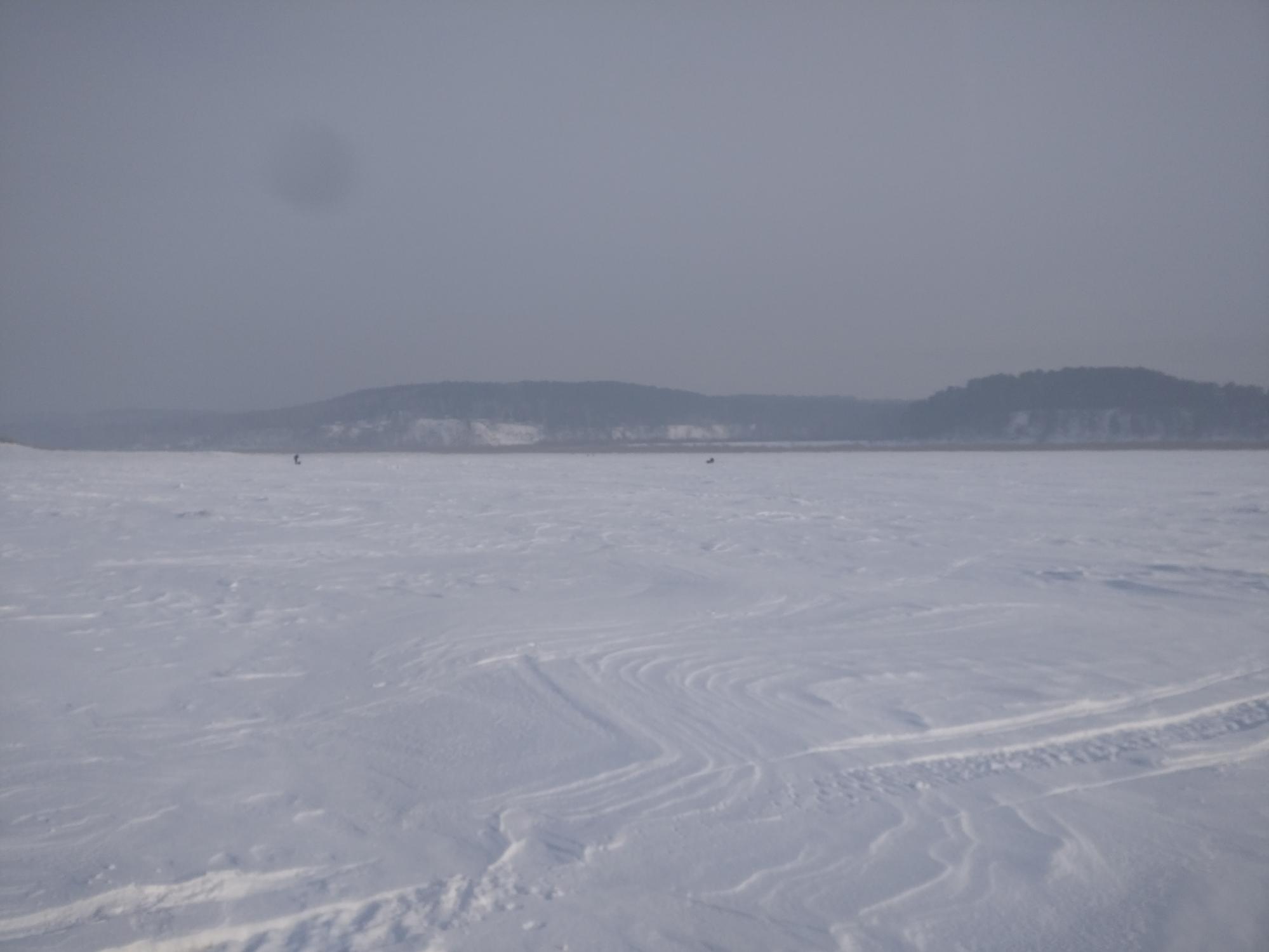 Снега много. Чуть соскользнул - колесо по ступицу в сугробе с краю.