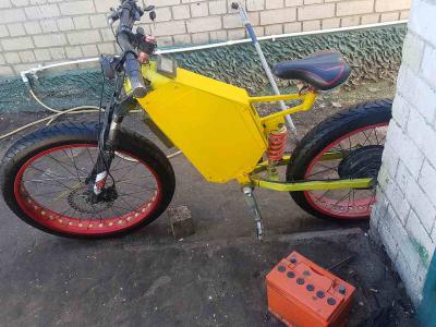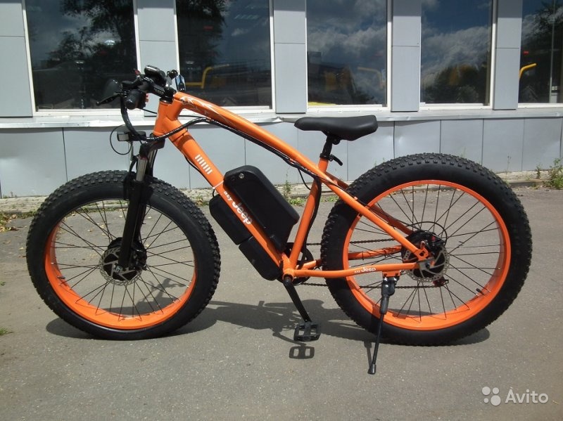 Это бывший в употреблении электрофэтбайк находится в Южном регионе России. Продавец пишет: "Без батареи, остальное состояние нового. Мотор 350w, скорость по трассе 35 км/час." Его цена 15000 рублей.