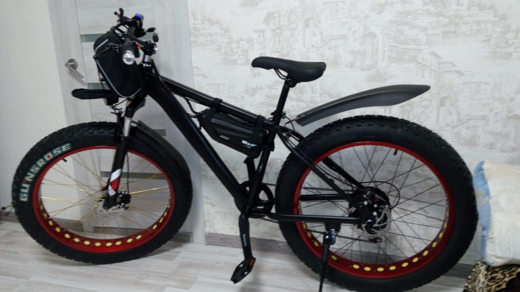 Пока поставил полноразмерные крылья, жду двухуровневый багажник, буду заказывать более большую сумку на руль с жестким креплением - чтобы туда можно было положить пару АКБ.