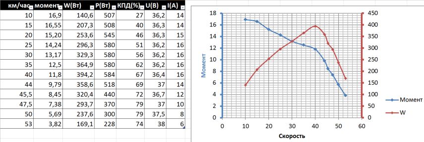 По сравнению с  калькулятором, низы завалены и по моменту и по КПД. Может мотор плохой, а может  контроллер.