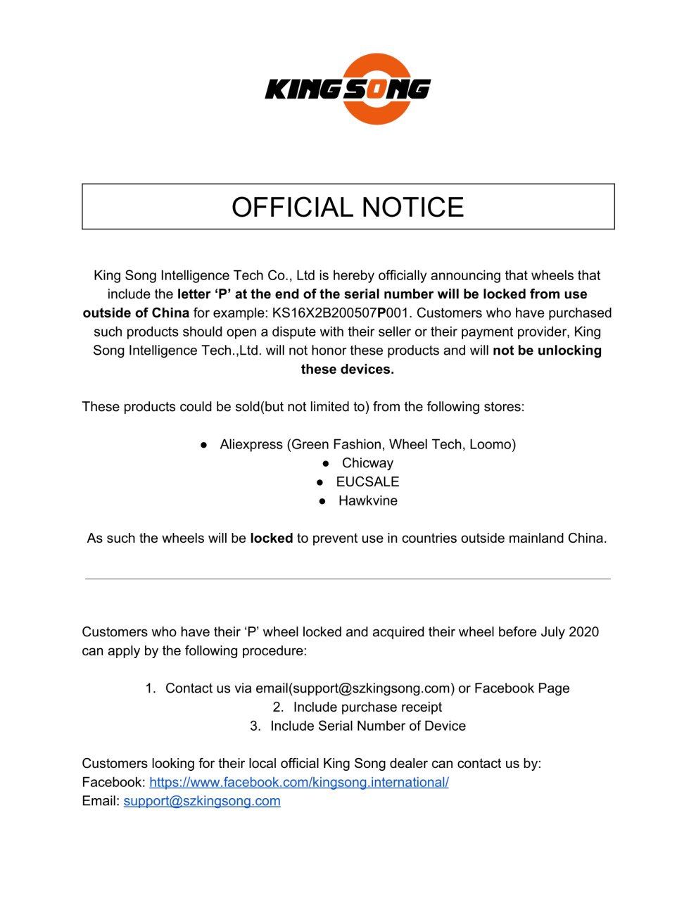 Можете написать KSу, что покупали Б/У колесо с рук, вместе с чеком от дилера и не знали, что на колесе был заменён контроллер. Это объяснит несовпадение номера колеса с номером в чеке (ваша история будет хотя бы выглядеть правдоподобно). Не понятно, что ответит KS, возможно, порекомендует обратиться в ЭД и решить проблему за деньги. Вряд ли это будет очень дорого, если не придётся менять контроллер. KS в этом не одинок. Сейчас Самсунг и LG банят свои телевизоры, произведённые для других регионов - купил серый телевизор или привёз из Европы, подключил к инету - словил бан!