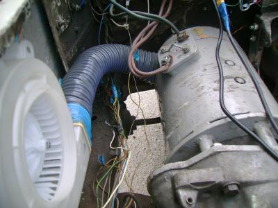 Сегодня закрепил дуйку на месте радиатора, подключил его через ДСишку 110\12В, подсоединил шланг в отверстие, где щетки, включил, дует так, что можно самому охладиться в жаркую погоду, если засунуть морду под капот. Я снова на коне, вот капот не успел поставить и зарядиться на полную, так, что все по плану.