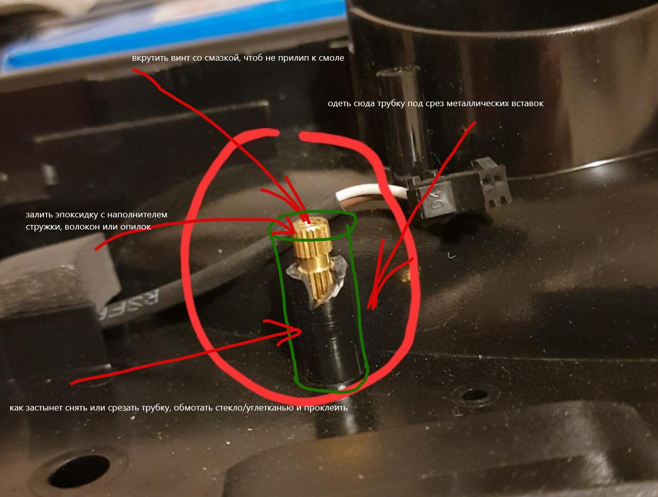 как вариант подобрать люминиевые трубки, одеть на остатки штырей и залить внутрь компаунда.