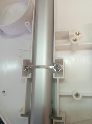 5) Будете покупать вторую батарею, не забудьте купить крепление! Его естейственно нет на второй стороне. Я вырезал полоски пластика из бутылки, прожёг дырочки гвоздём и прикрутил батарею этими полосками (на фото виден краешек). Держит плотнее родного крепления (родное немного люфтит, это - нет).