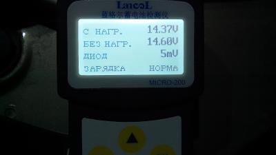 Тест заряда при 2500 об и пульсаций диодного моста (всего 5мв)