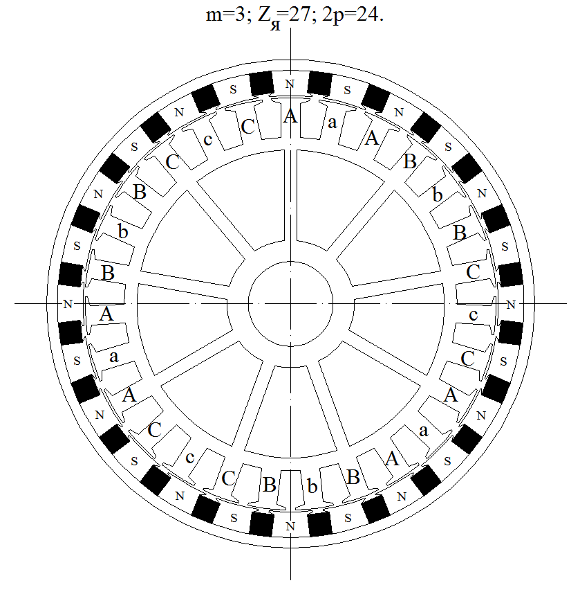 Правильно понимаю, что "S" и "N" это пакет из электротехнической стали? Такой же как и AaBbCc? магниты даны в масштабе или просто схема?