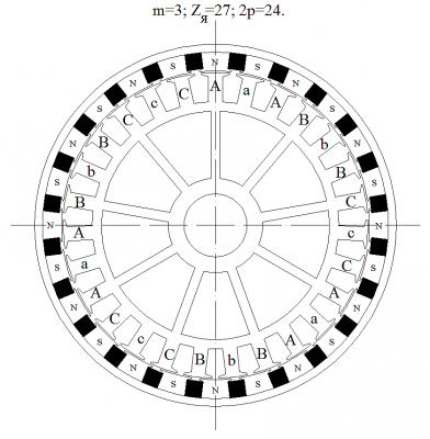 На этом двигателе можно делать ослабление магнитного поля.