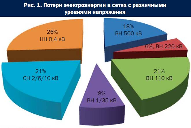 Судя по этому пирогу, все 100% электроэнергии уходит чисто в потери. 18+6+21+8+21+26=100