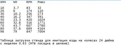 К примеру график загрузки стенда для покрышки 24` и с МТБ посадкой райдера.