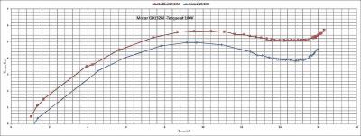 Чем будет отличаться при большей частоте для знатаков не стоит упоминать. Но заметим одно. Почему разница от 0 до 1200 оборотов составляет 20-27%.  Разница в моменте. Не стал ли этот мотор уже более тяговым? И стартует с большим моментом.