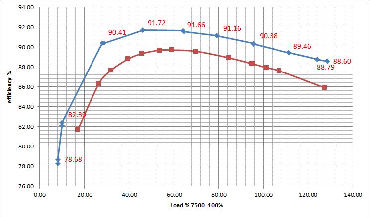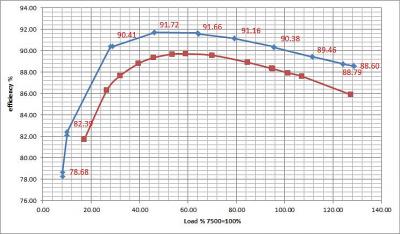 А вот кпд отличается много только на старте и на перегрузке, а в номинале  всего 2%