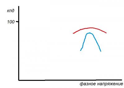 Очень хочется увидеть сравнение зависимости кпд от приложенного фазного напряжения при фиксированной частоте (оборотах ) и моменте, для нескольких режимов. В видео про нее говорится что она очень острая у классики.