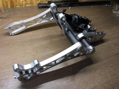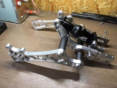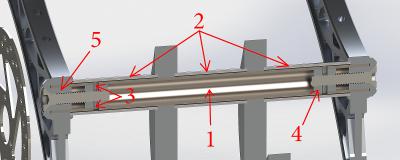 1. Титановая труба 20х2 ОТ4, на неё забиты кронштейны вилки и рычаги, на которые опирается амортизатор. Отверстия в дюралевых деталях специально меньше на 0.1мм, забивалось очень туго. Сама труба на 1мм короче, чем вся конструкция.