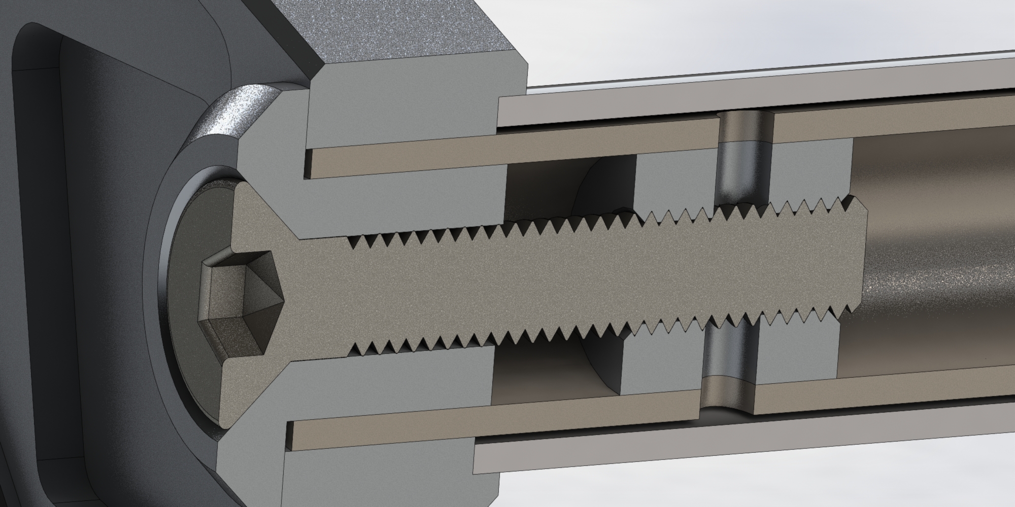 Вот, весь этот сендвич стягивается с двух сторон двумя винтами М8, пытаясь сплющить карбоновые трубки.