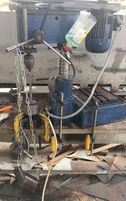 Самой сложной задачей оказалось, просверлить второе отверстие в оси, что бы сделать циркуляцию масла. В итоге, подручными средствами, за два с половиной часа, я осилил 100мм сверления :facepalm: