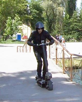 Высокий центр тяжести легко компенсируется опытом райдера. Ко всему привыкаешь и кажущиеся на первый взгляд "минусы", начинаешь использовать. К примеру, я не управляю рулём на скорости больше 15км\ч, а только за него держусь. Поворачиваю либо смешением туловища, либо переносом веса с ноги на ногу, в зависимости от радиуса поворота и его протяженности.