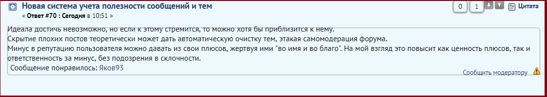 Новая система учета полезности сообщений и тем, а так же применение "репутации"