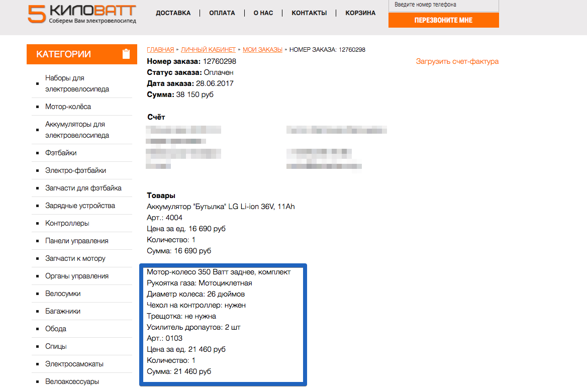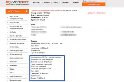 Чтобы не быть голословным, вот скриншот моего заказа. Причем в деталях не указан тип мотора. Но, если перейти по ссылке на сайте