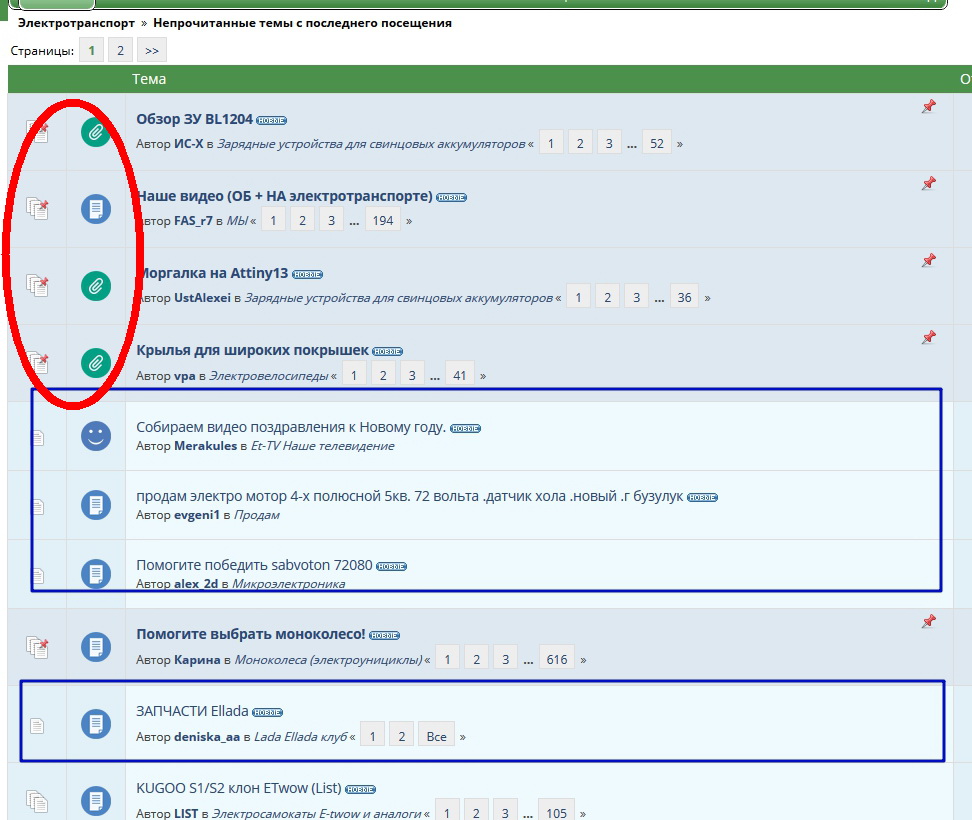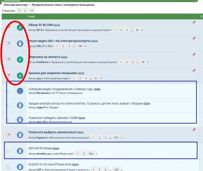 выделены жирным прикрепленные темы...