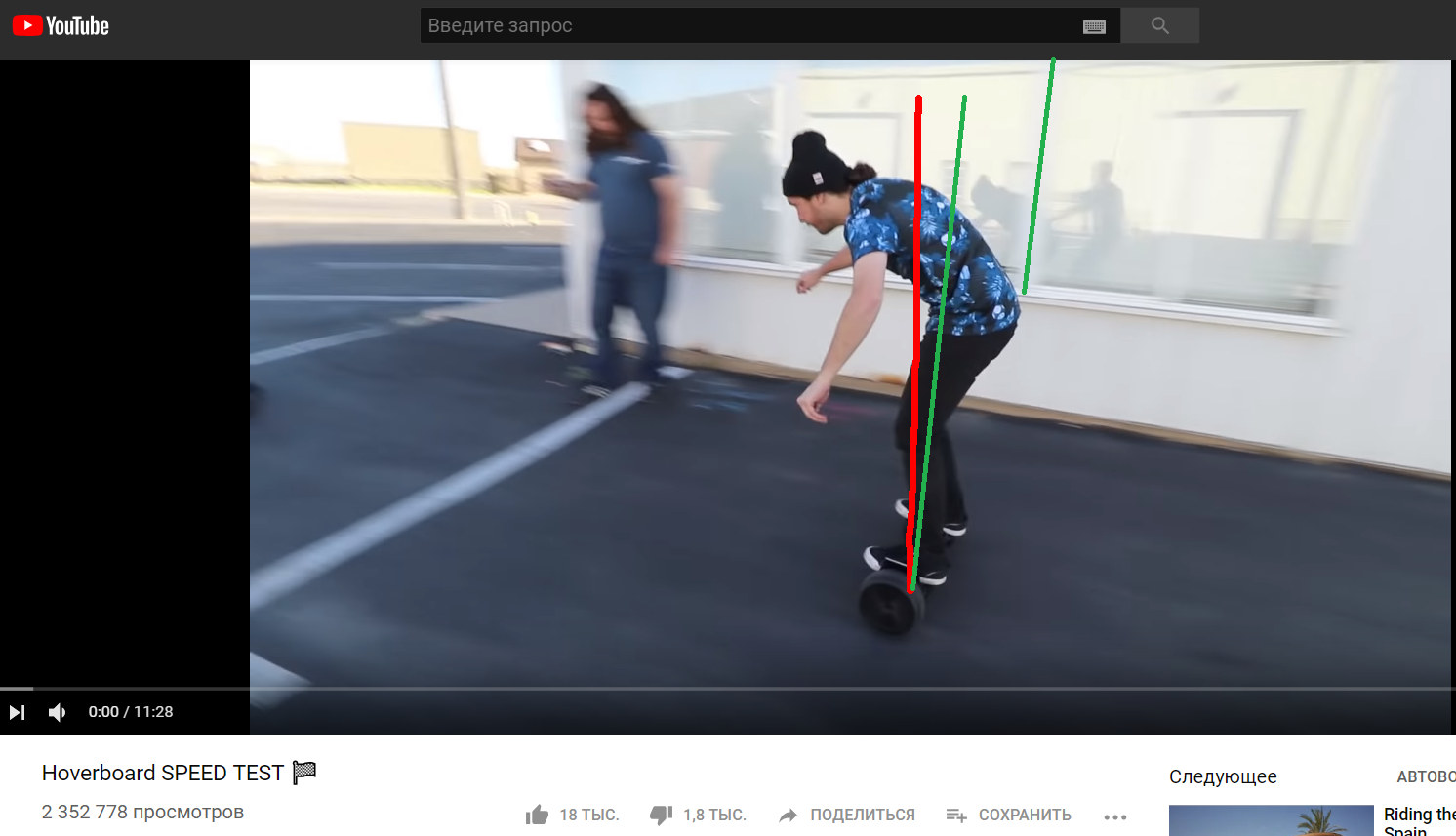 Красную линию на этом кадре провел Дмитрий. Он считает, что это вертикаль. Я бы хотел сказать, что именно так он врет и искажает факты. Но я так уже не думаю, я склоняюсь к тому, что он действительно верит во всю эту чушь. И да, про 6 кг на вентилятор. Раньше цифра была 0.5кг, сейчас он уже переврал эту цифру на 6кг, видимо 0.5 недостаточно внушительно. 0.5 кг дает отклонение что то вроде полградуса, для человека весом сотню, 6кг это уже 3.5 градуса, но тоже ни о чем.