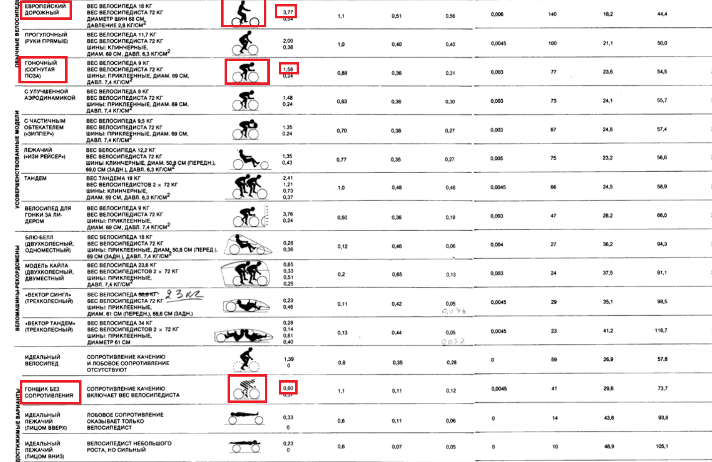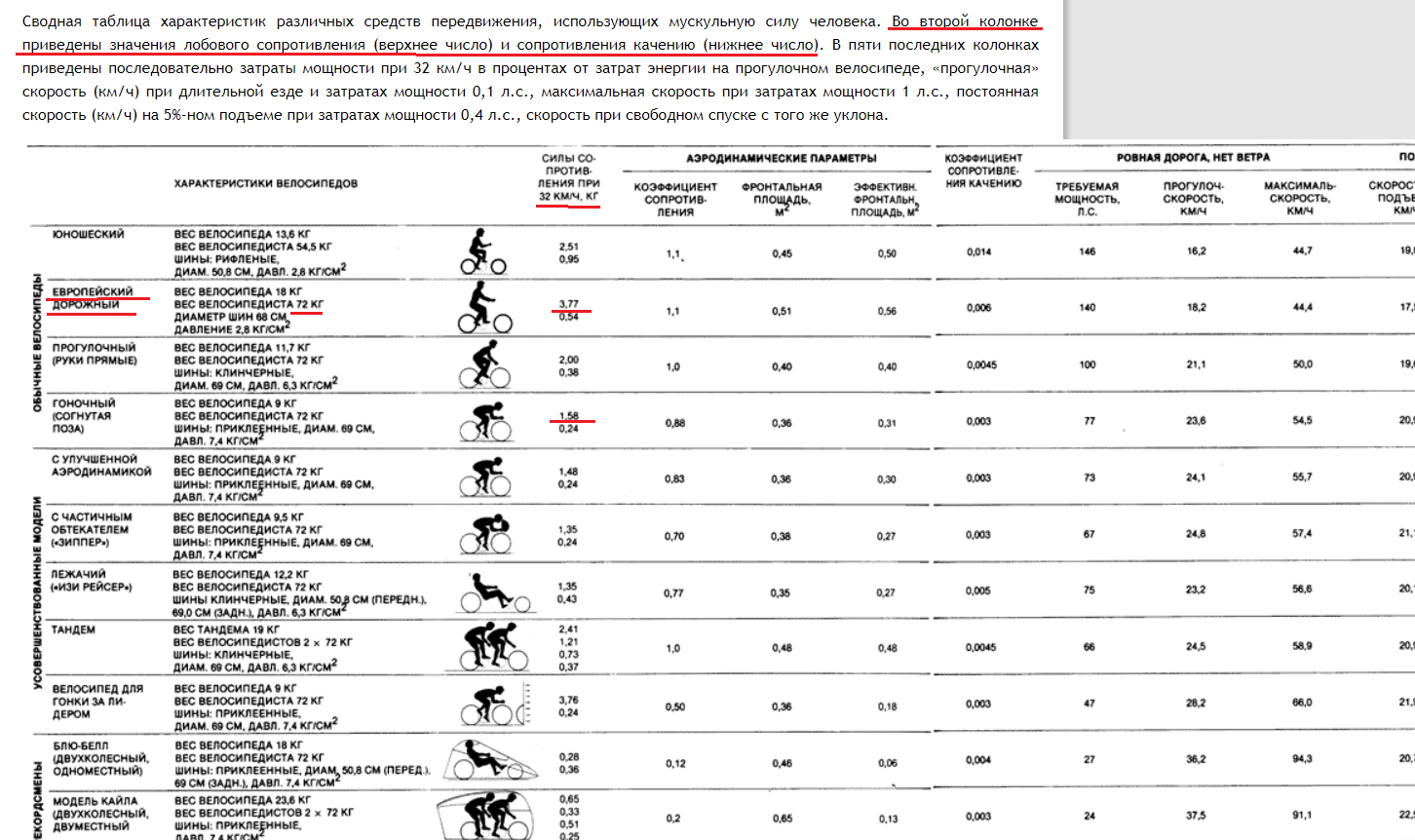 У велосипедистов за 100 с лишним лет все позы и сопротивления замерены в кг с точность до второго знака после запятой и на велосипедных скоростях :