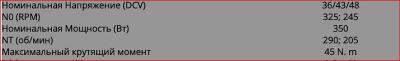Чем выше вольтаж, тем выше RPM. NO (RPM) - это обороты без нагрузки, т.е. при 36В - 245об/мин, при 48В - 325об/мин. NT (об/мин) это обороты под нагрузкой, т.е. реальные при езде, соответственно, при 36В - 205об/мин, при 48В - 290об/мин.