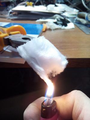 Абсолютно не горит от огня зажигалки. Не спекается: