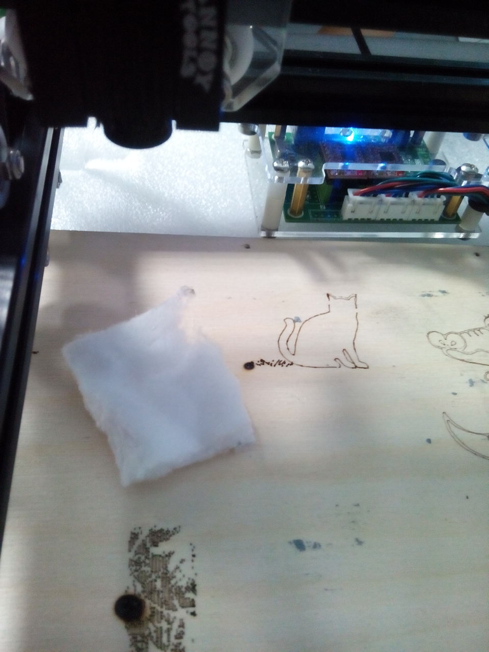 Устойчив к лазерному излучению (синий лазер 2.5Вт). Место фокусировки лазера - зачернено для уменьшенния отражения луча зажигалкой и маркером. Чисто поржать  :-D :