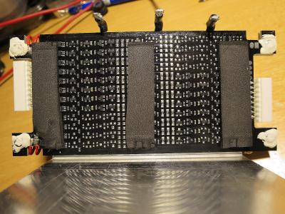 [b-b]Пластина между плат не прижата, так как платы вздыблены дугой, возможно при ремонте убраны шайбы между болтами и с боков платы стягиваются лучше - изгибая ее в середине, пасты тоже нет.[/b-b] теряется смысл этой пластины охлаждения.