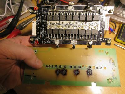 Пробиты Феты и фазы замкнуты, с фетами иногда горят драйвера (мелкие транзисторы от управляющей ноги фета)