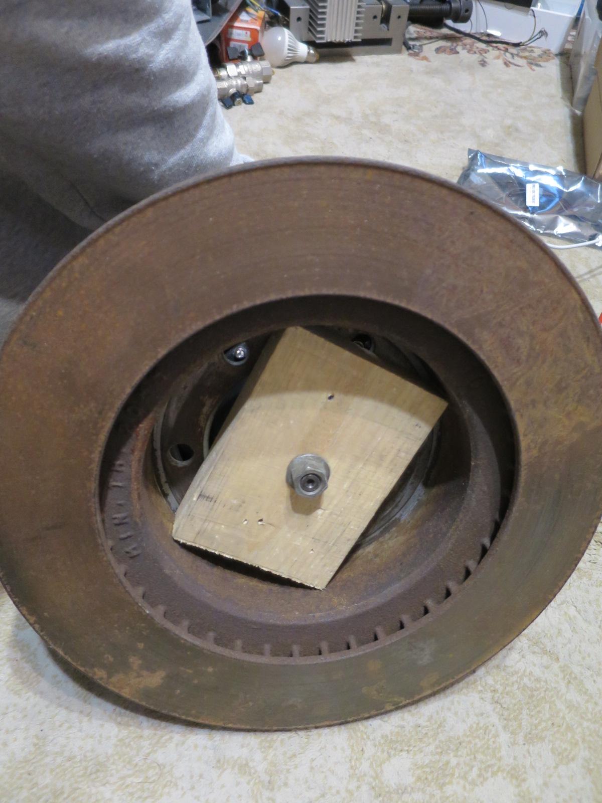 использовал старый стертый колесный диск, кусок доски , 2 самореза, и гайки на колесо , отверстие под ось 10 мм и вбок напильником до 12 мм. (в общем под ось)