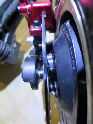 Установка без шайб, поэтому регулировать не очень удобно, с шайбами не достаёт колодка, а так 95% колодок в работе, немного подточил плоскость , скобу использовал не родную ( та что с колодками не подходит )