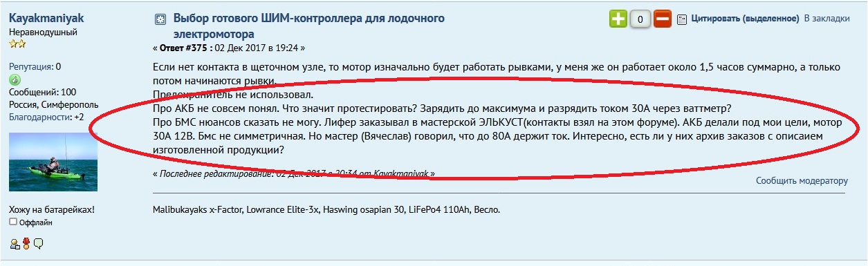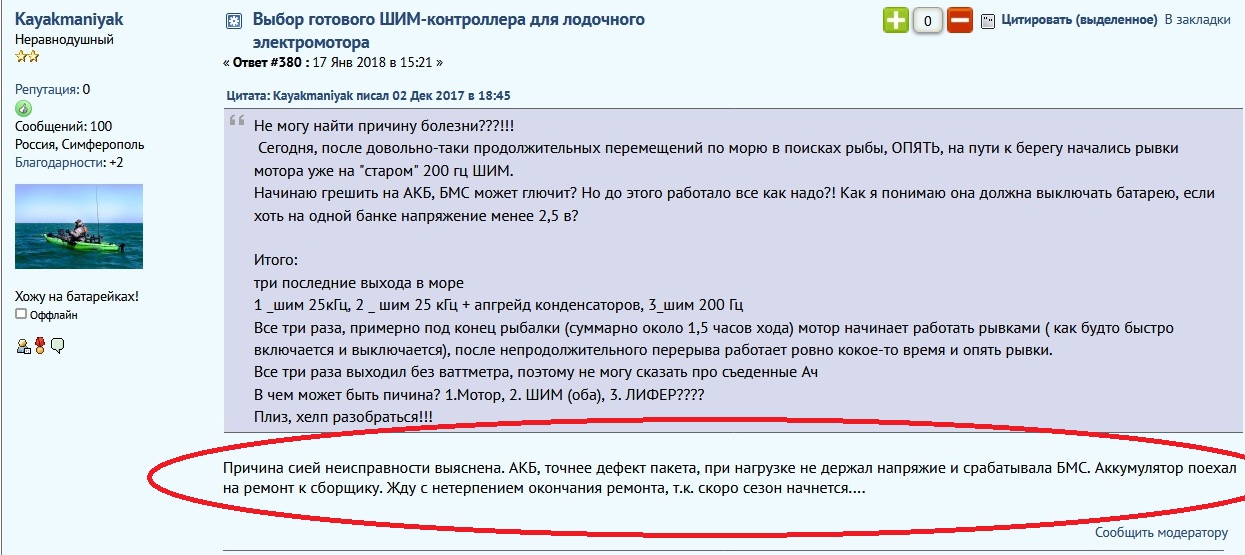 Мы не поставляли  ШИМ-контроллера для лодочного электромотора.  Если есть проблемы с акб- человек может обратиться, будем решать. Насколько я знаю претензий по акб к нам нет.