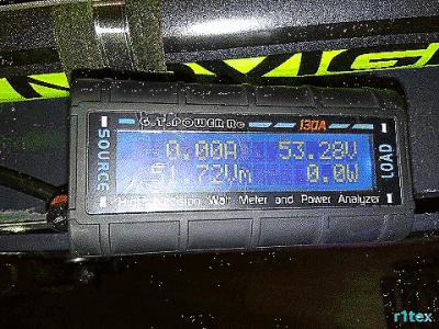 Показания текущих вольт в ваттметре и в ручке газа разнятся на ~0,3-0,5В. Вероятно эта особенность из-за того, что минус вольтметра идет не через основной минус контроллера, а через провод массы для самой ручки газа.