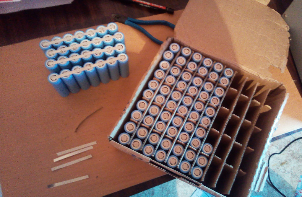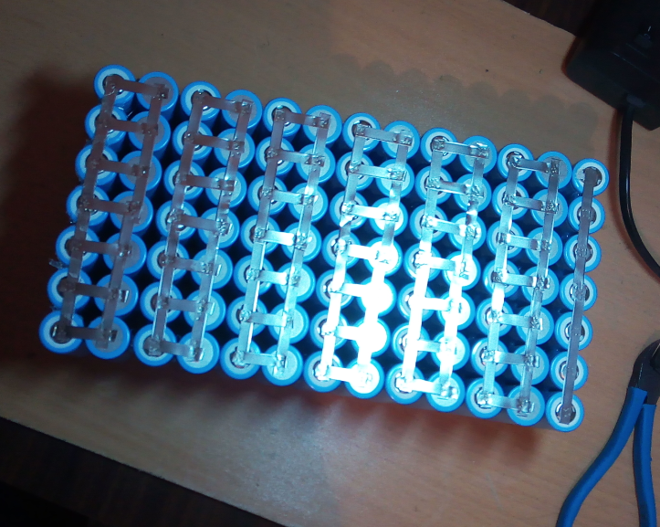 Хотя бы утолщили крайние выводные шины (раз в 7), а то, неровён час, два мотора по 500w в пике, могут запросить аж до 4000W хор. умерим аппетит до  70 Ампер (4.2Vна яч=3822W, 3.6V на яч=3276W и 3Vна яч=2520W) полосочки никелевой ленты между крайним и рядом стоящим элементом будут греться, увеличивая своё сопротивление  - и на банки 18650 нагрузка будет ещё более неравномерно распределяться.