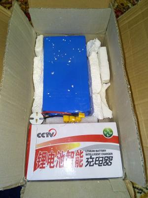 Сегодня пришла долгожданная (на самом деле всего неделя с момента отправки) посылка с СПб, в которой находилась АКБ Li-Ion 48В 22Ач (13s7p на элементах LG MH1 3200 mAh), а также зарядное устройство с током зарядки 5А. Заказывал АКБ у товарища [b-b]spb-e[/b-b] (Дмитрий). Конечным результатом доволен, именно то, что ожидал. В данный момент она будет на резервации до покупки и сборки оставшихся компонентов (ориентировочно 1.5-2 месяца), в связи с этим испытать её в работе не получается физически. При проверке АКБ на напряжение, мультиметр показал значение 43,7В и за это отдельное спасибо Дмитрию, так как 43,7В это примерно 40% заряда данной сборки АКБ, а значит соответствует требованиям хранения лития и мне нет необходимости выполнять какие-либо подготовительные работы для её резервации.