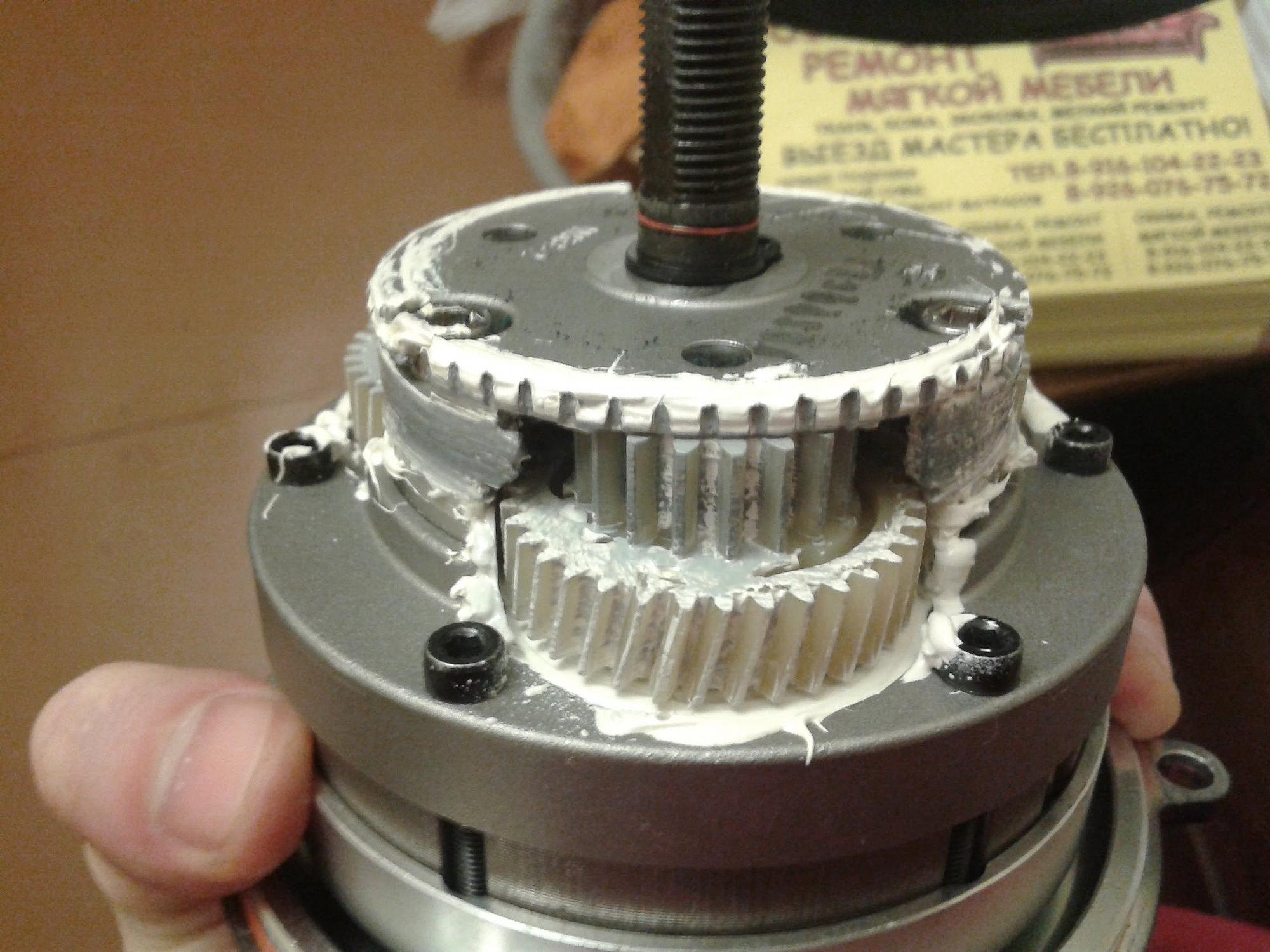Перед сборкой окрутил три болта на крышке и сфоткал внутренности, если кому интересно. Извините за дикий засвет.