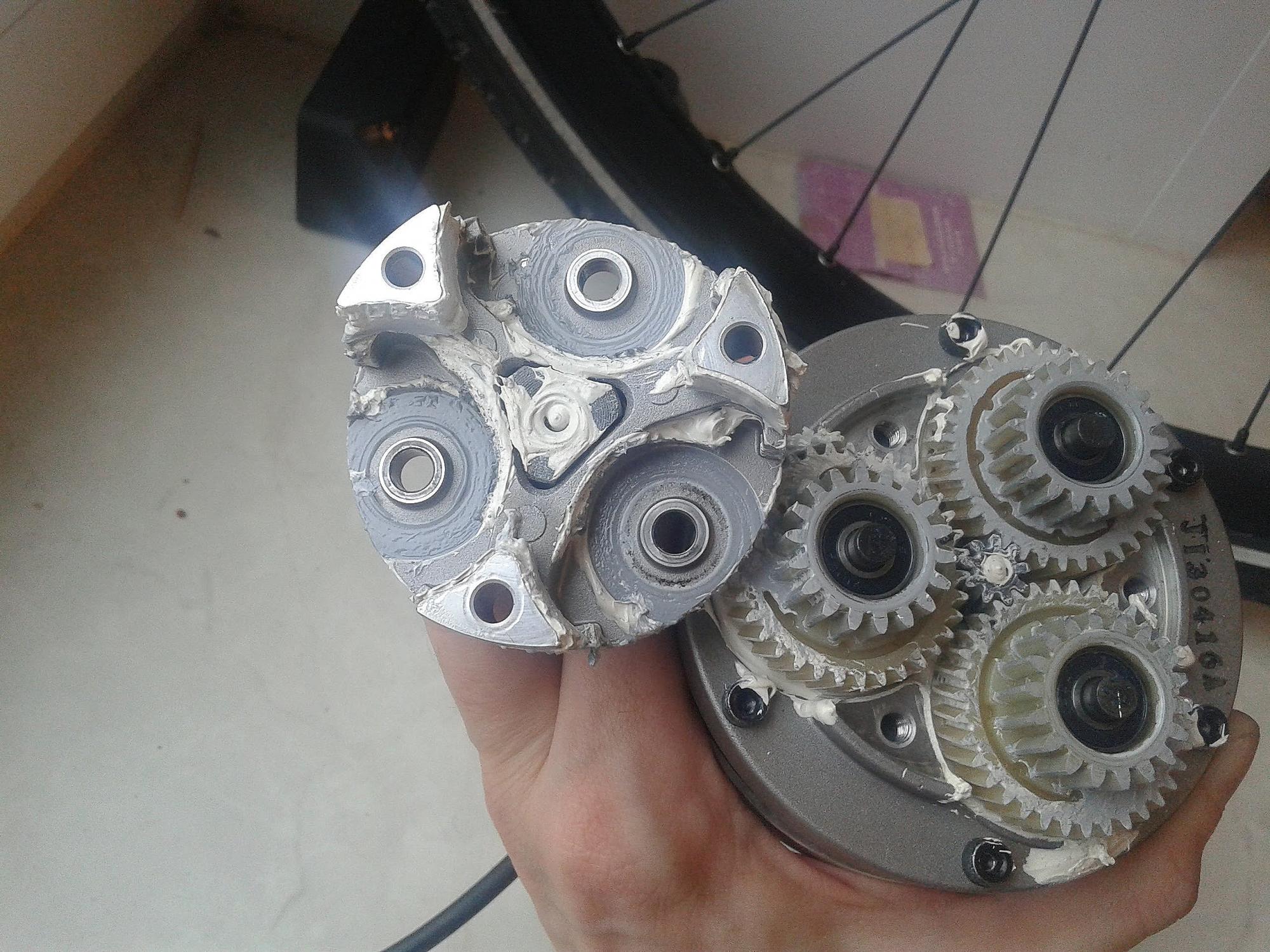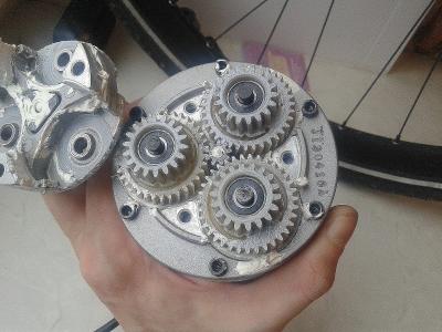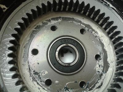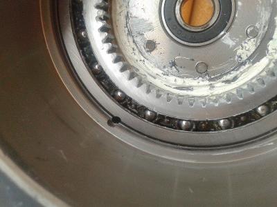 имхо сами ролики расположены между шестерней и корпусом,по фото даже видно что шестерня вращалась относительно корпуса.