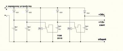 [b-b]Какой рывок? при зарядке реле отключают от выхода аккумуляторы, так что на выходе просто появляются 36 вольт.