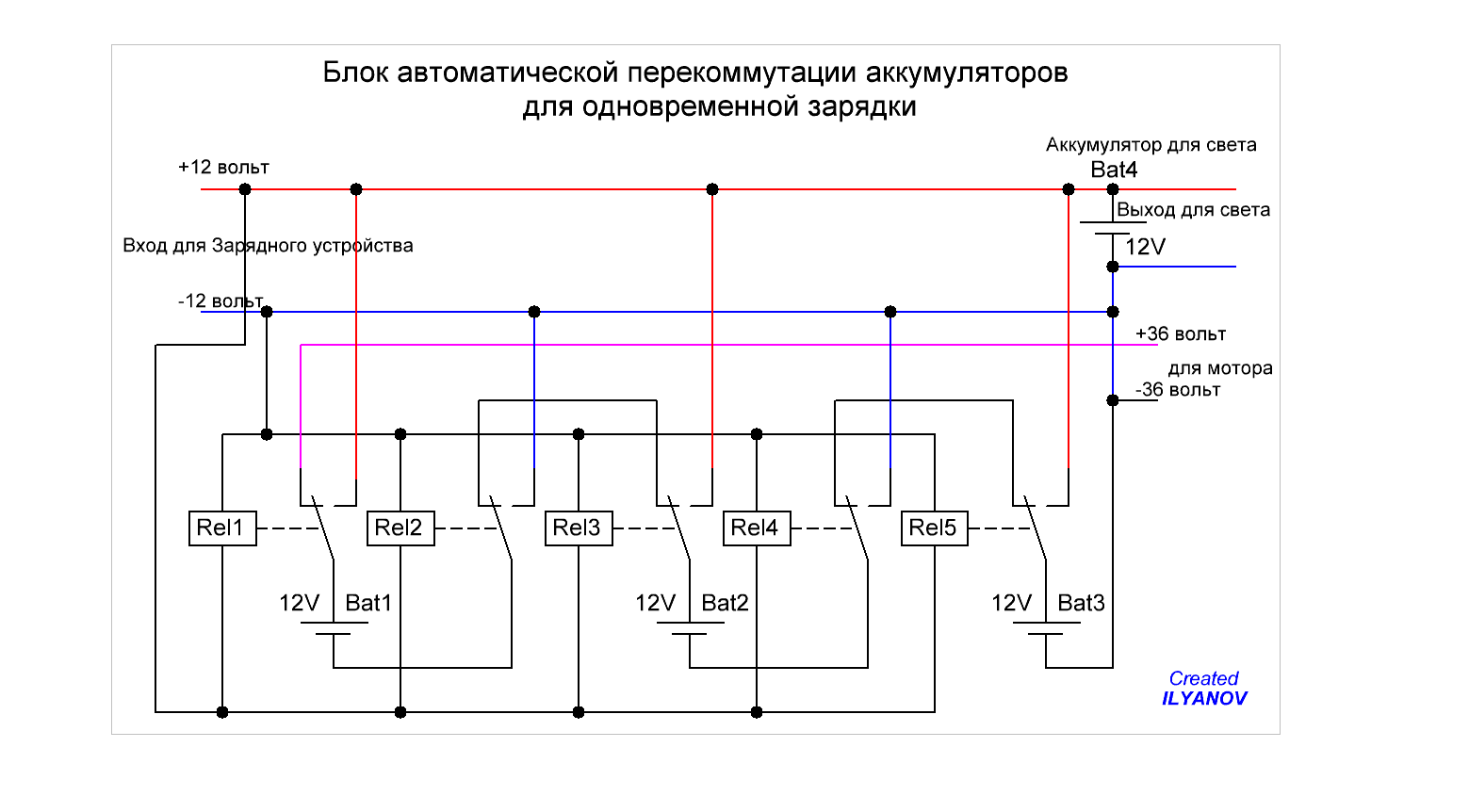 Чуть позже нарисую прям реле и аккумуляторы :-)