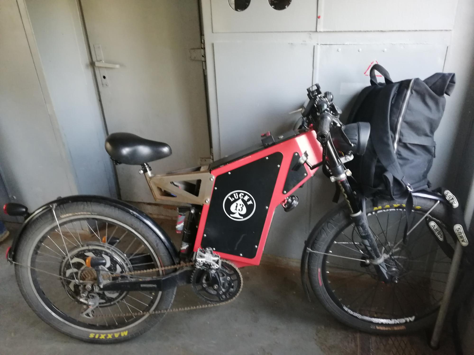 Начались регулярные поездки. Долговременная скорость 60кмч на хорде достигнута. Максималка 67 кмч на батарее 16S достигнута благодаря функции ослабления поля ЯКа. Однако крышки МК горячи и мотору требуется внутреннее принудительное охлаждение и датчик скорости.