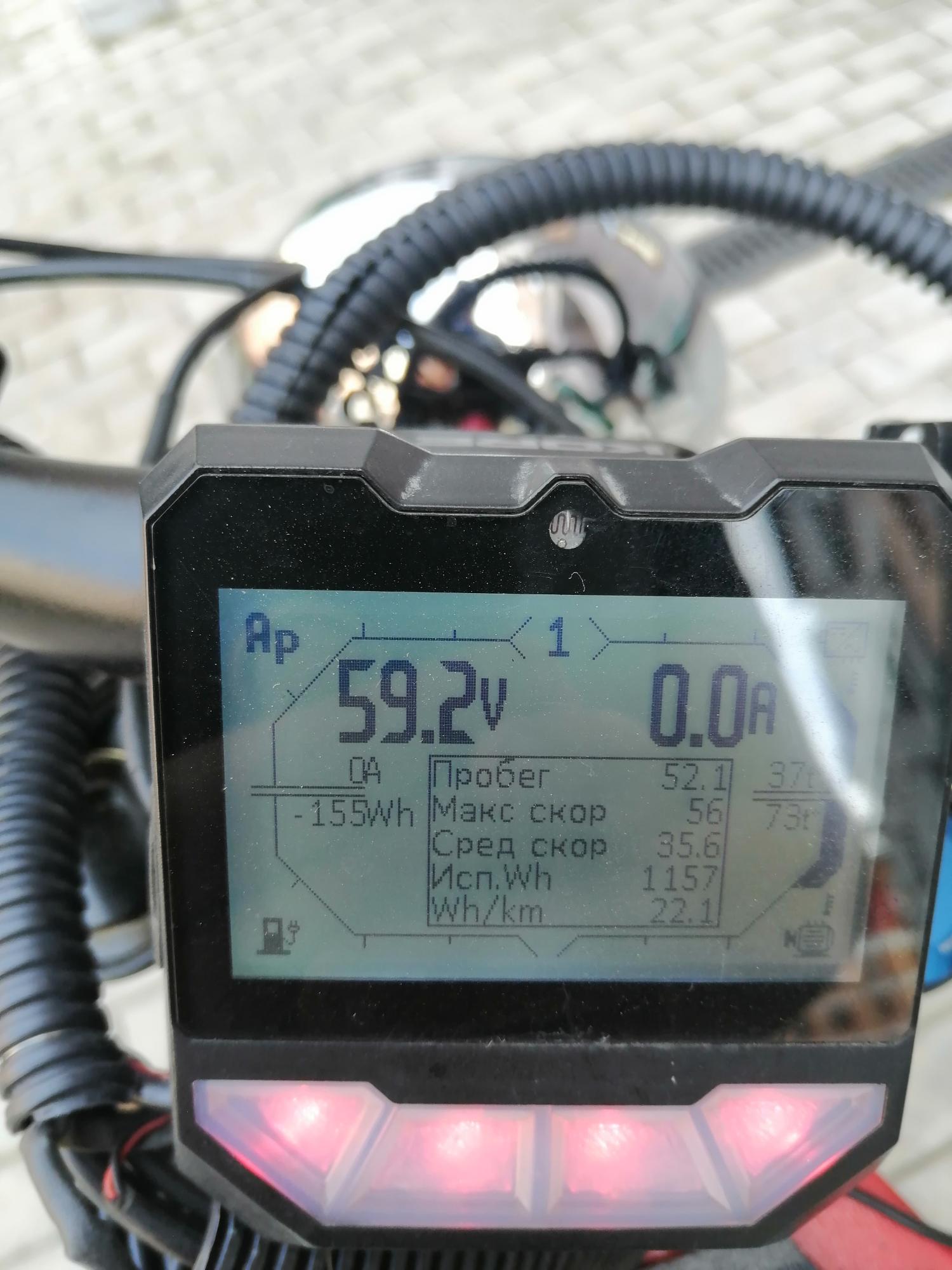 Статистика за поездку 50км с ограничем скорости 50 км.ч. с током 65А/100А.