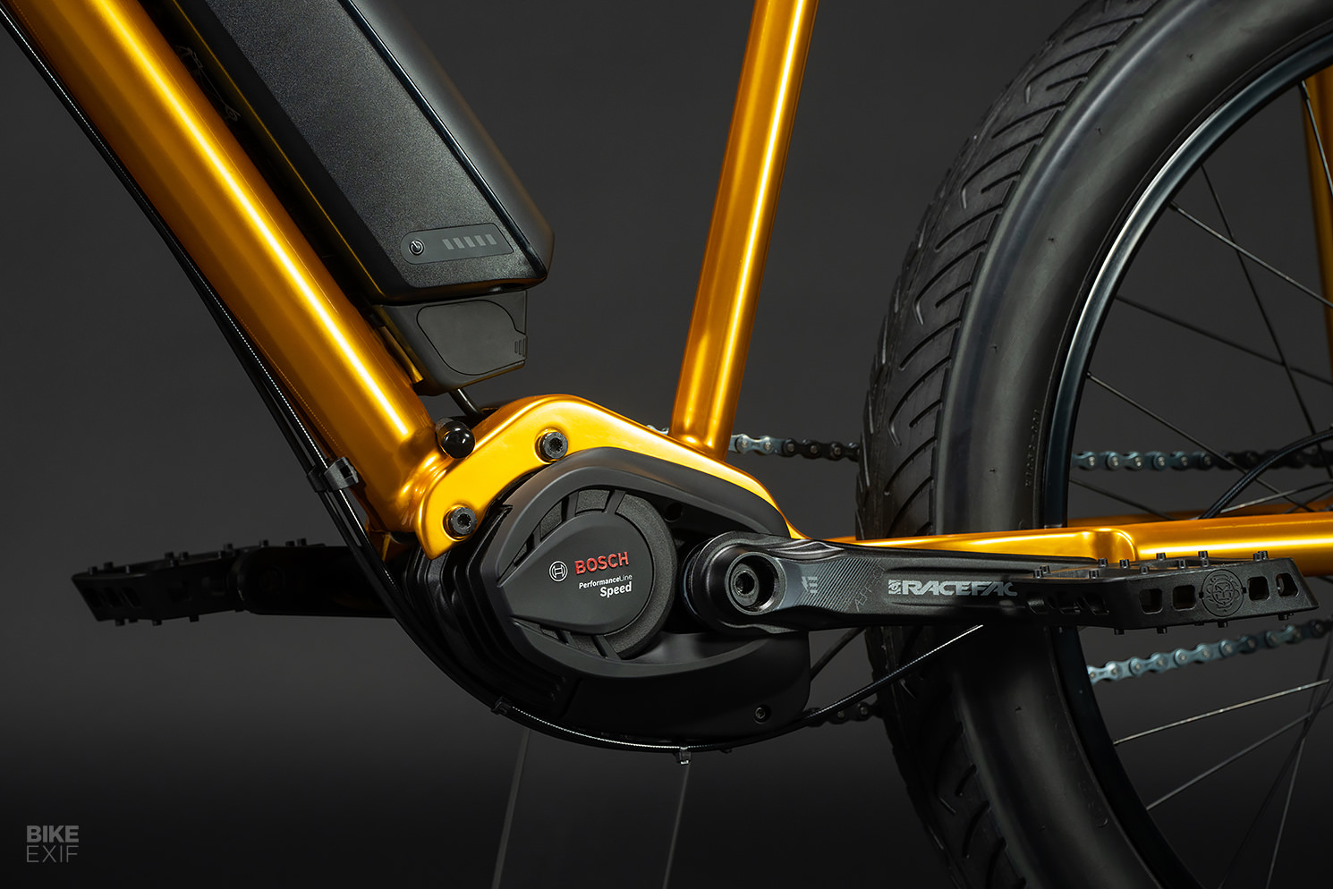 Размер и форма мотора таковы, что он отлично вписывается в дизайн кареточного узла, практически не влияя на общий вид байка.