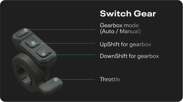 Стандартно для управления предполагается использовать пульт в верхней трубе, очень похожий на аналогичный у Specialized. Из коробки доступны три режима, добавляющие 30 %, 60 % и 120 % от той мощности, с которой райдер давит на педали.  Для точного дозирования подаваемой мощности измеряются сразу усилие педалирования, каденс и скорость благодаря датчику на тормозном диске.