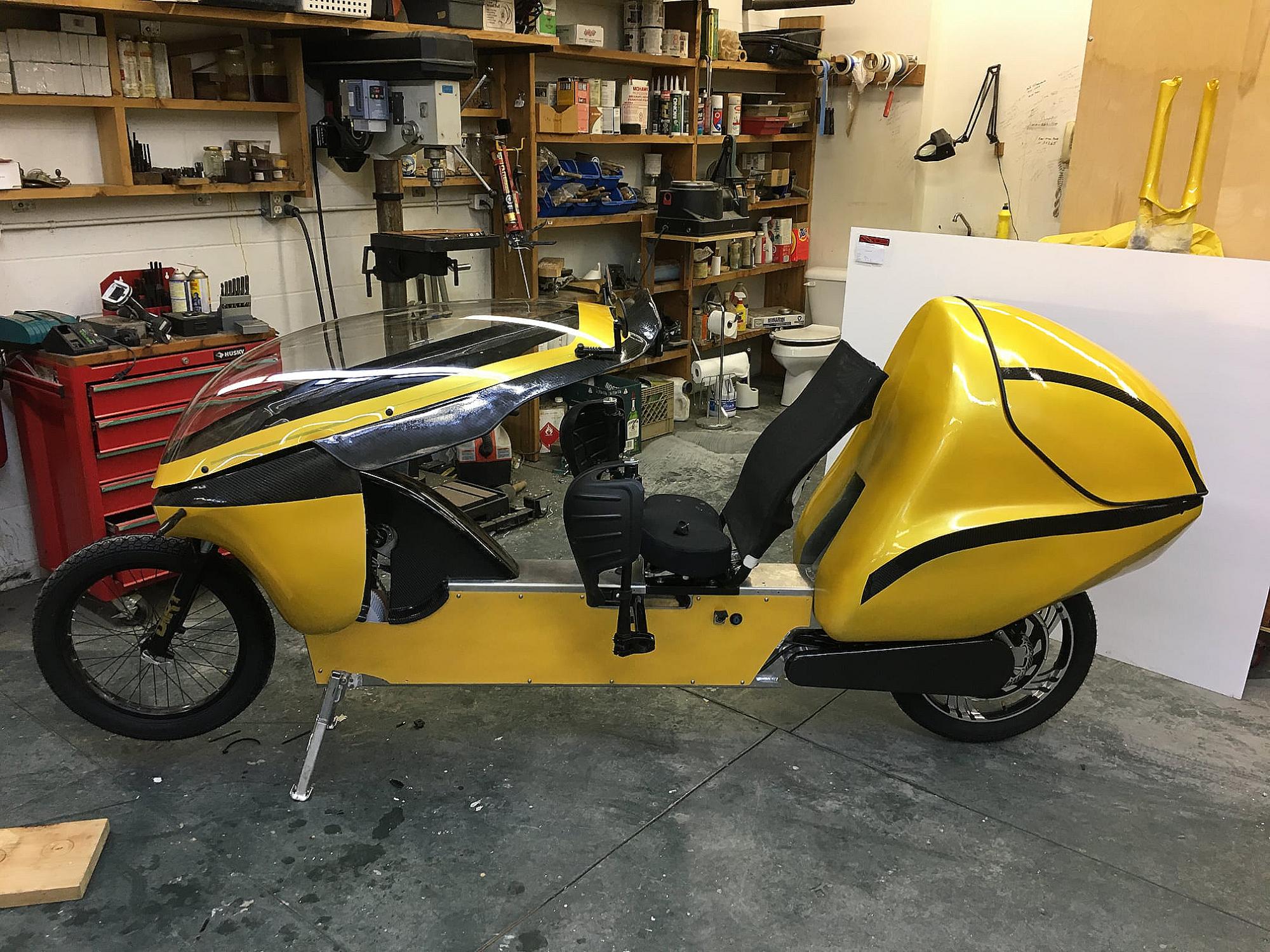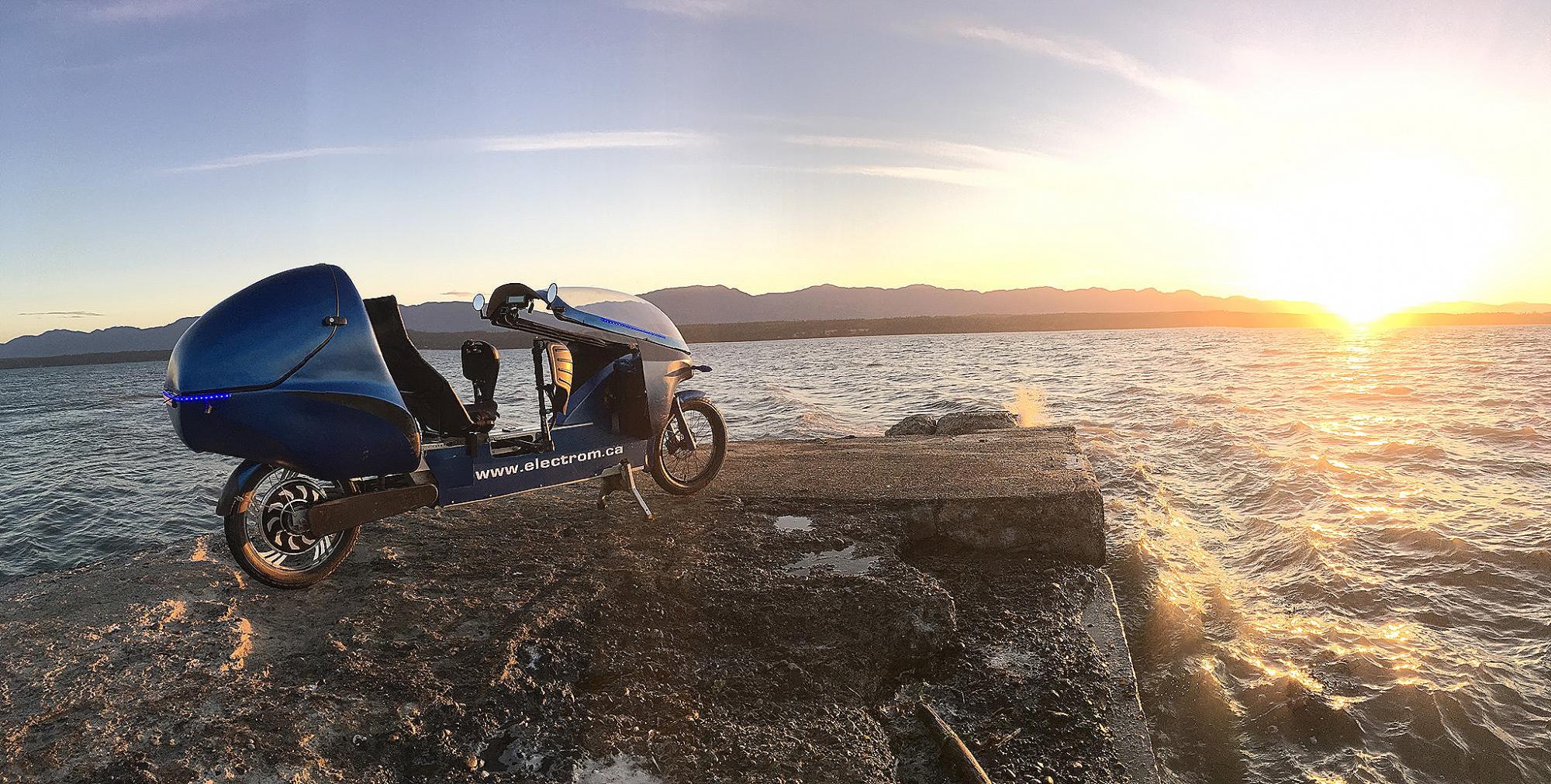 Новая канадская компания разработала электровелосипед, который выбрасывает за борт всё известное с точки зрения внешнего вида и технологий. Electrom LEV — это лежачий велосипед, который на скорости 15 км/ч превращается в своего рода электрический мотоцикл.